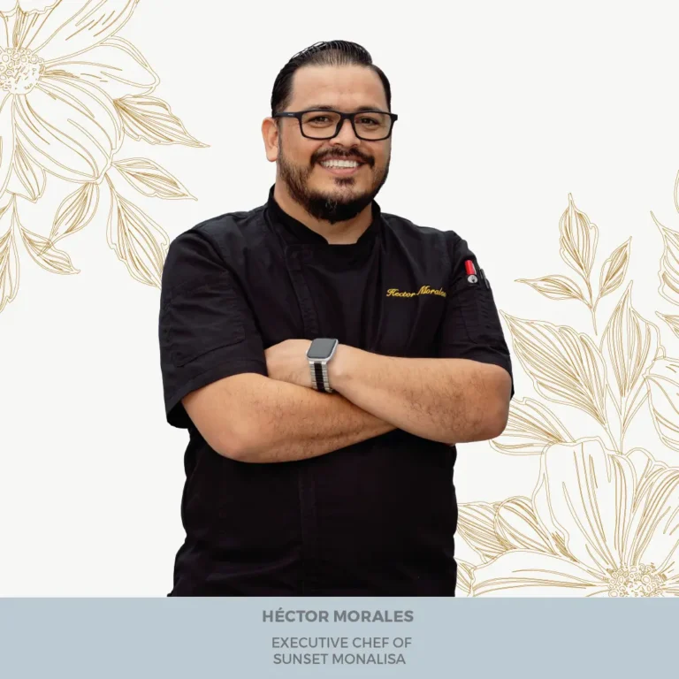 En tanto, originario de Sinaloa, Culiacán, el chef ejecutivo Héctor Morales es quien está detrás de los deleites culinarios que ocurren en Sunset Monalisa desde 2005, imaginando que prepara sus platillos para las personas amadas. Inspirado en la cocina mediterránea, de sofisticada ejecución, lidera nuestra la cocina con experiencia y corazón. Y, se sabe, para quienes cocinan, no hay mejor sazón que el amor.